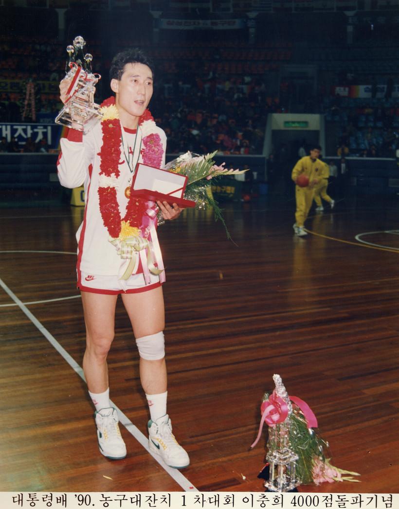 이충희는 1988년 12월 17일, 자신의 99번째 경기였던 기업은행전에서 전반 13분경에 골밑슛을 넣어 농구대잔치 사상 처음으로 3,000득점을 올렸다. 4,000점은 2년 뒤에 찾아왔는데, 그 과정은 아마 이충희 본인은 물론이고, 언론도 애가 탔을 것 같다. 대기록에 1점 남겨두고 시즌을 마쳤기 때문. 그는 1989년 농구대잔치 기아와의 결승에서 마지막 자유투 1구를 실패하면서 그 시즌을 3,999점으로 마쳤다. 그 아쉬움은 1990년 농구대잔치 개막전이었던 12월1일 상무전에서 풀 수 있었다. 4,000득점을 달성하던 날, 이충희는 "5천 득점도 넘고 싶다"고 말했다.