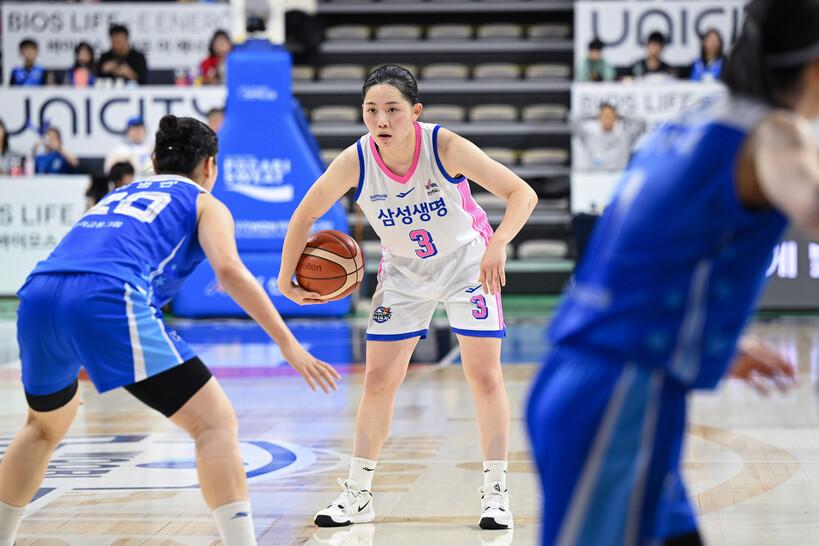 용인 삼성생명은 24일 아산 이순신 체육관에서 열린 BNK금융 2025~2026 여자프로농구 아산 우리은행과의 3라운드 맞대결에서 51-44로 승리했다. 삼성생명(5승 6패)은 단독 4위가 됐다.