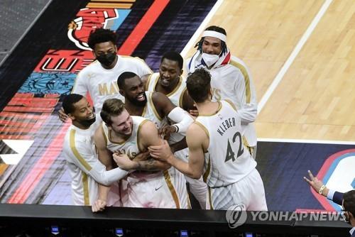 ▶루카 돈치치가 패색이 짙던 승부를 뒤집어 놓았다. 경기 종료 1.8초를 남기고 얻은 마지막 공격권에서 수비수를 피해 던진 불안정한 3점 플로터 슛이 그대로 골대 속으로 들어갔다. 이후 바로 종료 부저가 울린 댈러스는 극적인 역전승을 거두며 이날을 마감했다. 돈치치는 두 팔 벌려 이를 자축했고, 지난 2월 24일 보스턴전에 이어 3점 위닝 버저비터를 올 시즌 2번이나 터트린 돈치치는 이로써 댈러스 구단 역사상 유일하게 3점슛으로 다수의 경기를 뒤집은 첫 번째 선수가 되었다.
