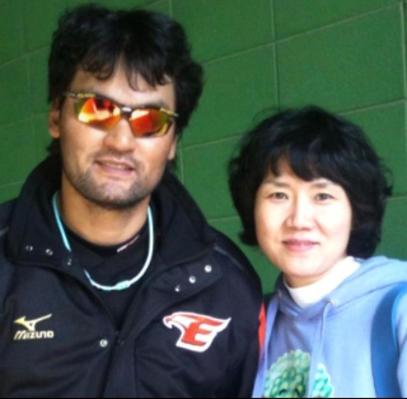 김태환 감독님이 가수 ‘수와진’ 오빠들하고 친분이 있었어요. 근데 부산사람이기도한 수와진은 또 저희 신랑하고도 형 동생하는 사이였어요. 그러다가 95년도에 롯데 자이언츠가 두산 베어스하고 원정경기를 치르게 됐는데 수와진이 서울 올라온김에 감독님을 뵈러 찾아오게 된거죠. 현재 지금 저희 신랑을 함께 데리고요. 감독님한테 인사도 시킬겸해서요. 감독님이 본래 야구에도 관심이 많기도해서 신랑이 반가웠을거에요. 그런 인연으로 저희 국민은행 선수들도 감독님따라서 잠실로 두산과 롯데의 야구경기를 보러가기도 했고요. 그날 저녁에 회식이 있었는데 감독님이 수와진하고 신랑을 데리고 왔어요. 저와 신랑은 회식 자리에서 처음 만나게 된거죠. 감독님이 신랑한테 나이를 물었는데 저와 제 동기 (박)현숙이와 동갑이더라고요. 그렇게 안면을 트게됐는데 어쩌다보니까 결혼까지 이어지게됐네요.