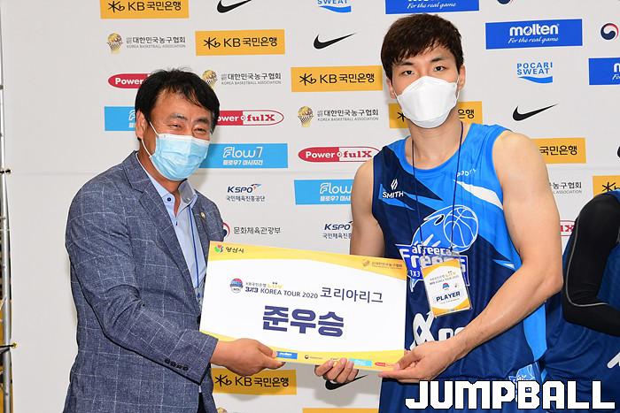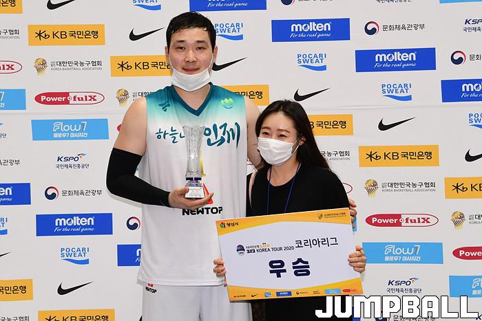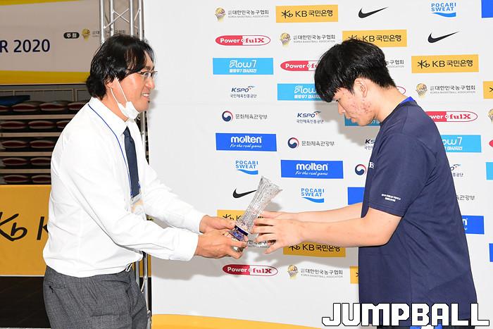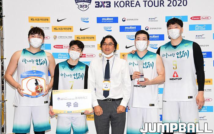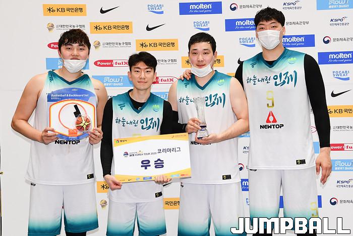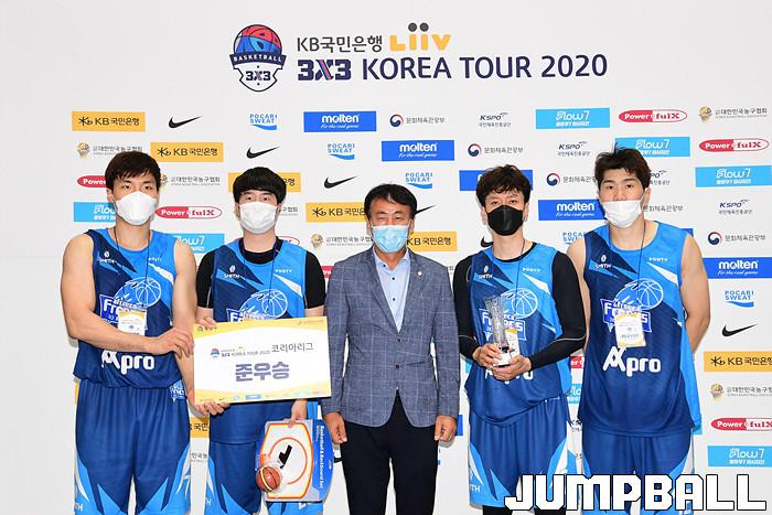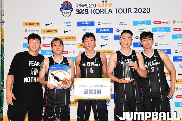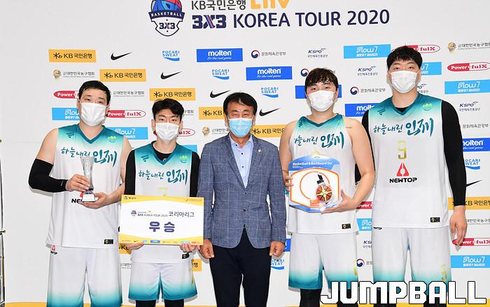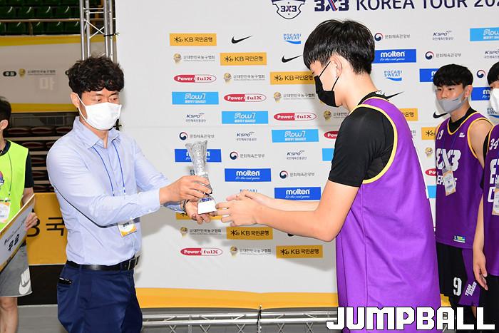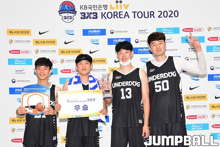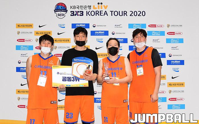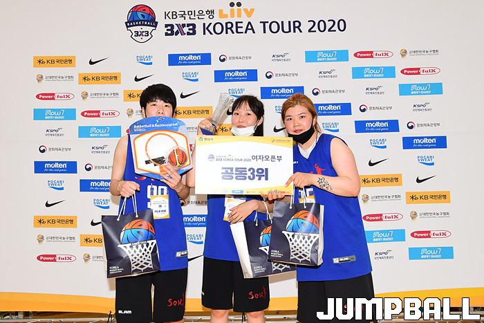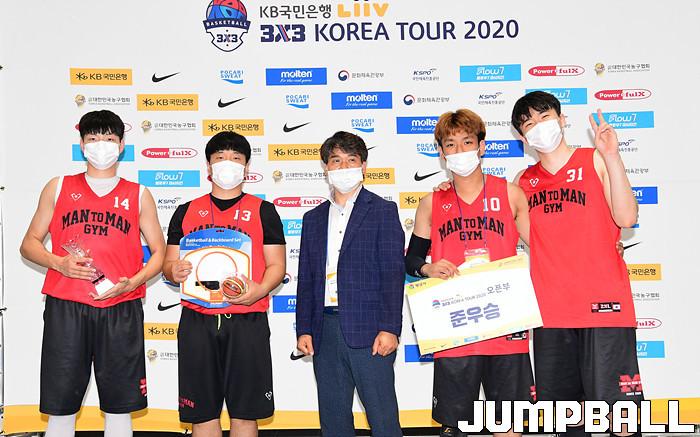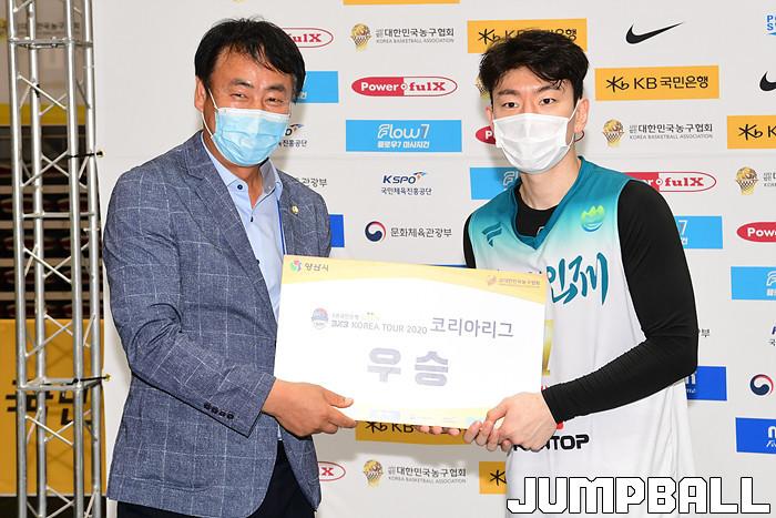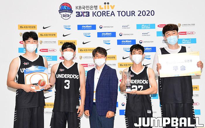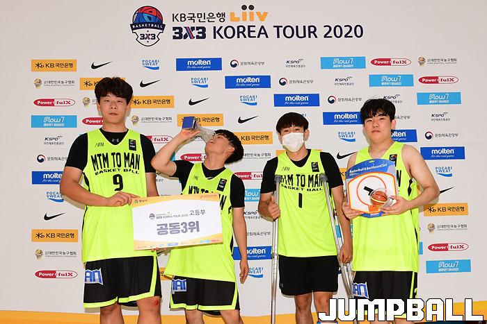 [점프볼=양산/박상혁 기자] 26일 양산실내체육관에서 열린 'KB국민은행 LiiV 3X3 코리아투어 2020 양산대회' 2일차 경기, 중등부에서는 Playing모그, 고등부에서는 케페우스, 여자오픈부에서는 숙명여중, 남자오픈부에서는 언더독, 코리아리그에서는 하늘내린인제가 우승을 차지하였다. 코리아투어 2020 양산대회 시상식 화보