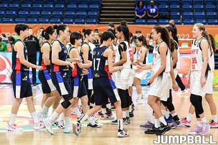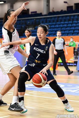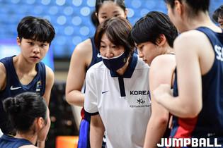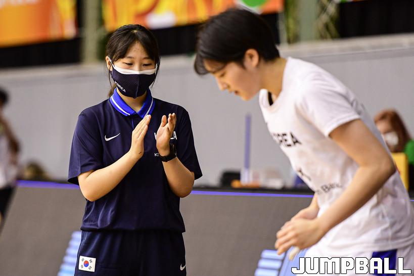 10일 헝가리 데브레첸 올라 가보 스포츠홀에서 열린 2022 FIBA U17 여자농구 월드컵 캐나다와의 조별 리그 2차전 경기, 임수연 트레이너가 선수들의 웜업을 지도하고 있다.
