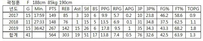 프로 스카우트들이 유심히 보는 것 중 하나는 매년 성장하는 모습이다. 하나씩 달라지고, 좋아진다면 프로에 왔을 때 더 발전가능성이 크기 때문이다. 곽정훈은 대학 입학 후 득점력을 점점 끌어올리면서도 3점슛과 야투성공률을 보완했다.