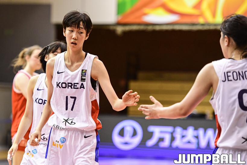 10일 헝가리 데브레첸 올라 가보 스포츠홀에서 열린 2022 FIBA U17 여자농구 월드컵 캐나다와의 조별 리그 2차전 경기, U17 여자농구 대표팀 고현지와 정현이 하이파이브를 하고 있다.