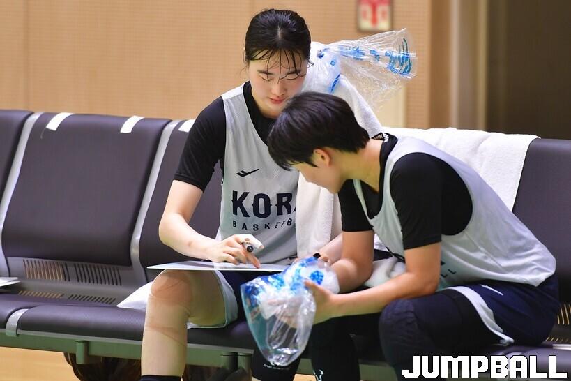 U19 대표팀 주장은 송윤하(KB)다. 하지만 경미한 허벅지 부상으로 잠시 팀 훈련을 빠지고 재활 중이다. 코트에서는 이민지(우리은행)가 팀원들을 이끌며 조직력을 다듬고 있었다.