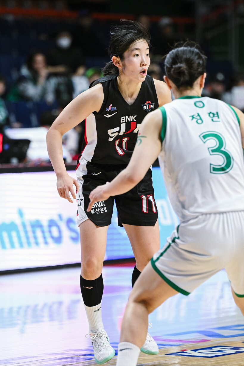 최근에는 타임아웃에서 니모를 부르는 박정은 감독의 말을 아주 자주 들을 수 있다. 그만큼 김정은의 활용 빈도와 출전 시간이 늘어났음을 의미한다. 김정은도 사령탑의 조언을 받아 무럭무럭 성장, 19경기 평균 3.3점 2.5리바운드를 기록하며 팀에 필요한 퍼즐 한 조각이 되는 중이다.