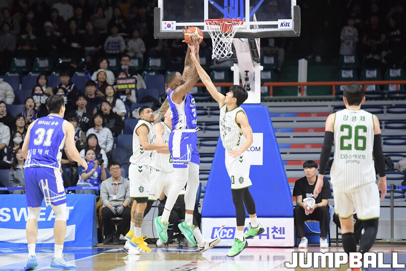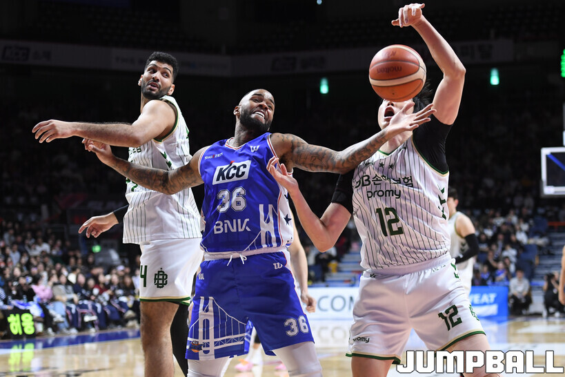 [점프볼=부산/박상혁 기자] 31일 부산사직체육관에서 열린 2025-2026 LG전자 프로농구 부산 KCC와 원주 DB의 농구영신 매치, DB가 알바노와 엘런슨의 활약으로 허훈이 분전한 KCC에 99-82 승리로 2025년을 마무리 했다.