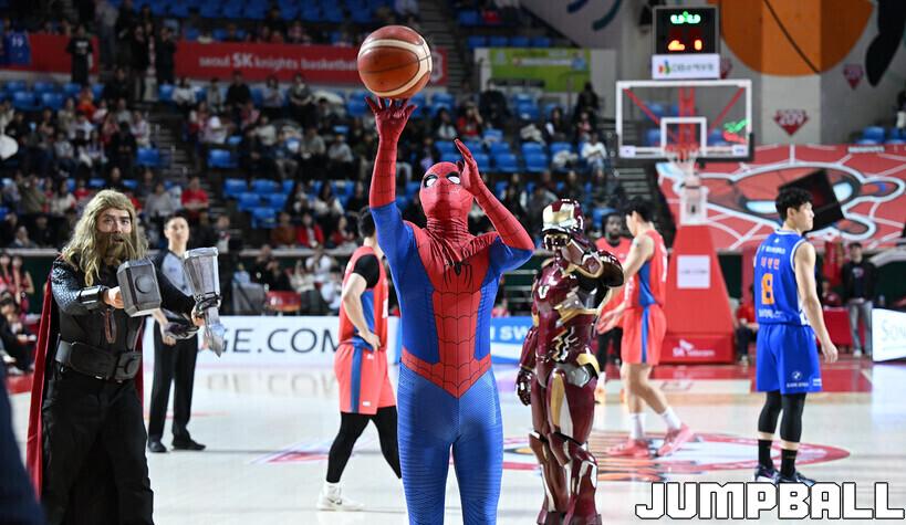 SK는 스파이더맨 테마의 특별 유니폼을 착용했다. 붉은 색감은 팀 컬러와 자연스럽게 맞물렸다. 경기 시작 훨씬 전 코트 한켠에서는 또 다른 이야기가 자라나고 있었다. 개인 훈련에 나선 SK의 영건들 사이에서 농구보다 먼저 마블 이야기가 불이 붙었던 것이다.