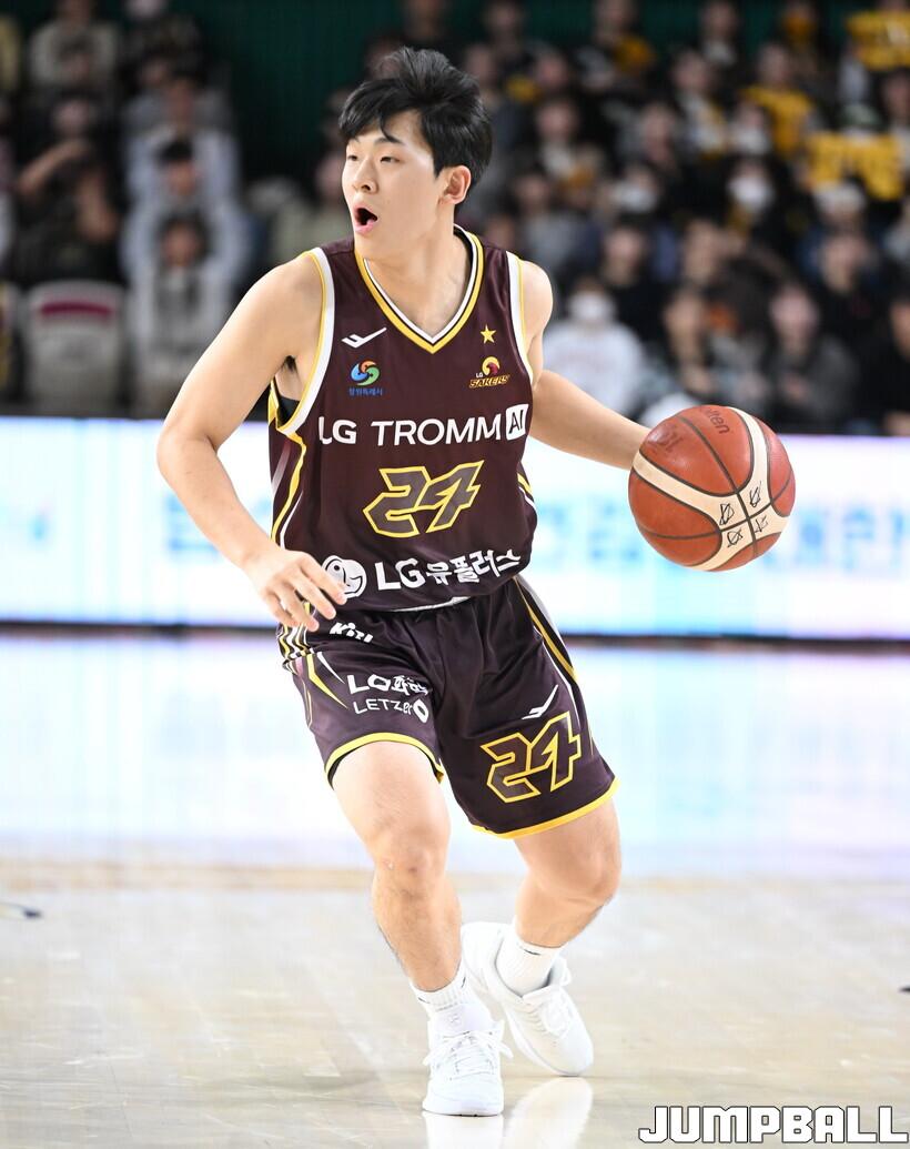 한양대의 에너자이저에서 LG의 에너자이저로 바뀌어야 할 과제를 받은 김선우. 그는 드래프트 후 한 달이 넘은 시점, 적응을 순조롭게 이어 나가고 있다. 꾸준히 출전 명단에 이름을 올리며 지난 4일 대구 한국가스공사를 상대로는 데뷔 경기까지 치렀다.