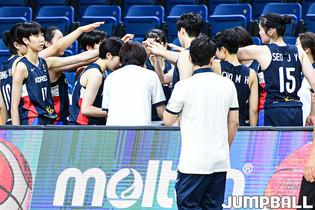 9일 헝가리 데브레첸 포닉스 아레나에서 열린 2022 FIBA U17 여자농구월드컵 한국과 이집트의 경기, 여자 대표팀 허유정과 고진영이 하이파이브를 하고 있다.