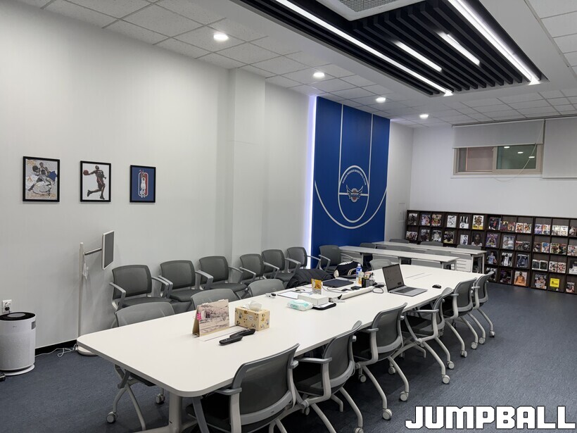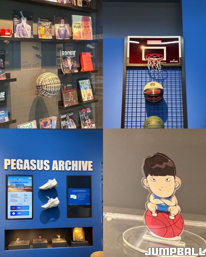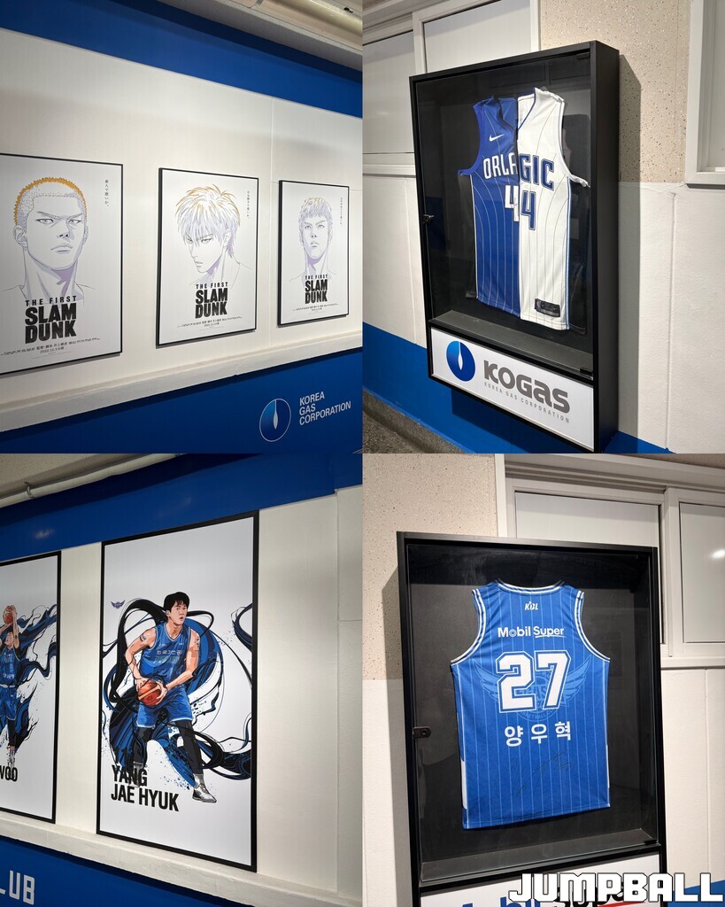 체육관 복도로 나오면, 농구의 향기가 더욱 진하게 풍긴다. 애니메이션 ‘더 퍼스트 슬램덩크’의 캐릭터들 하나하나가 선수단을 맞이해주고, NBA와 관련된 굿즈와 유니폼들도 액자 안에 전시되어 있다. 가스공사 관계자는 “복도에서도, 24시간 내내 농구와 함께하는 체육관을 느끼게 하고 싶었다”라며 농구로 채워 넣은 복도의 뒷이야기를 전했다.