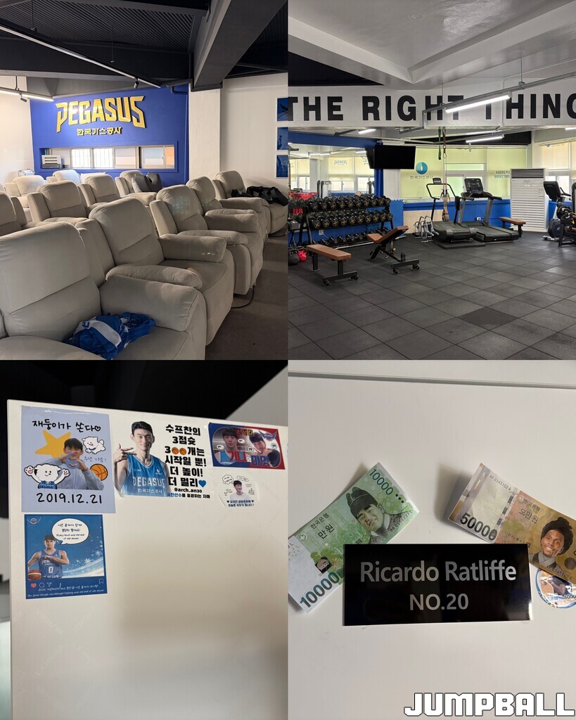 사랑이 담겨 있는 공간이기도 하다. 까꿍이들이 전한 커피차 스티커는 클럽하우스 인테리어의 일부가 됐고, 정종대왕(정성우+세종대왕)과 라사임당(라건아+신사임당)도 선수단과 함께한다.