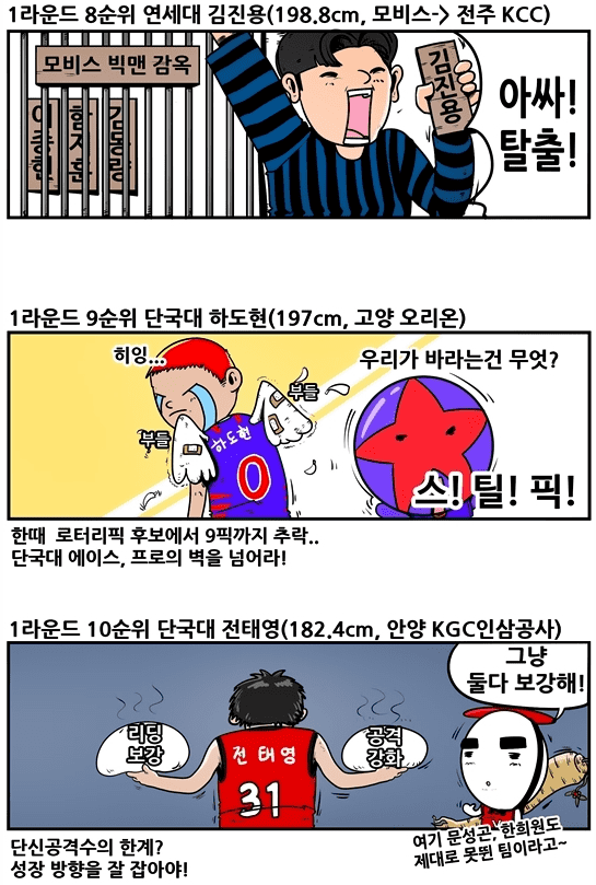 하지만 세상사 모든 일이 그렇듯이 닥쳐올 앞날은 누구도 알 수 없다. 아이러니하게도 유현준, 김국찬, 김진용은 모두 KCC에 남아있지 않은 상태다. 각각 보상선수와 트레이드 등으로 둥지를 옮겼다. 단순히 드래프트 시점의 평가와 예상만으로 팀의 미래를 짐작하기 쉽지 않다는 것을 보여준 좋은 예다.