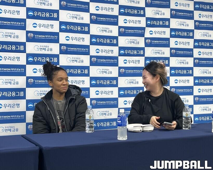 선수들과 있었던 간단한 일화를 소개해달라 하자 류해림 통역은 “키아나가 경기를 뛰다 잘 안 풀리면 많이 흥분할 때가 있다. 그럴 때 괜찮다고 다독여주고, ‘숨 쉬어, 숨 쉬어’라고 진정시켜준다”고 이야기했다.