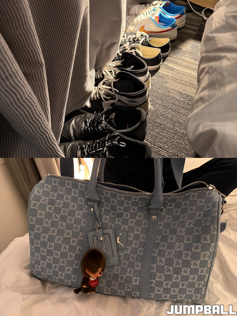 “대만 가서 산 가방인데, 제가 진짜 사고 싶었던 거예요. 데님이라서요. 한국에서 비쌌는데 대만 조던 가게에 이게 진열돼 있었어요. 더 싸게 사서 너무 좋았어요. 완전 행복했죠.”