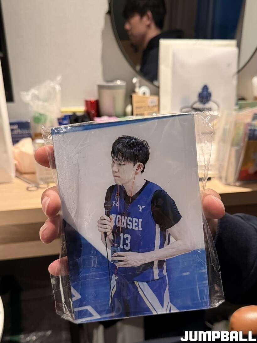 “팬이 찍어주셨어요. 잘 나온 것 같다고 하셨는데, 사진 계정을 따로 운영하지 않다고 하셨죠. ‘선물로 드리고 싶다’고 해서 액자로 만들어 주셨어요. 이거(연세대 사진)는 대학교 때부터 봐주신 팬이 해주셨어요. 3학년이 되고 첫 경기에서 수훈 선수가 됐을 때예요. 기념이 된 날에 좋은 선물해 주셨습니다.”