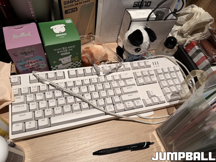책상 한켠에는 작은 주머니와 인형도 놓여 있었다. 그 안에는 립밤이 여러 개 모여 있었는데, 이쯤 되면 평생 써도 될 것 같은 양이었다. 인형의 퀄리티도 꽤 인상적이었다. 귀도 움직였고 유니폼도 제법 정교하게 입혀져 있었다. 강지훈 역시 아까워서 들고 다니지 못하겠다고 할 정도였다.