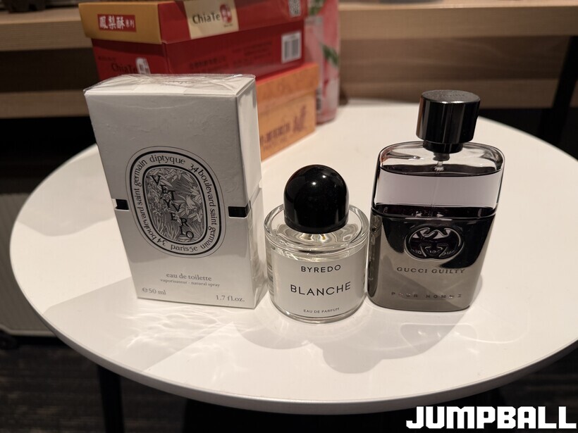 “첫 번째는 딥디크의 베티벨리오... 맞나? 이거는 여름 향수예요. 딥디크에는 오르페옹이라는 유명한 향수가 있어요. 사람들이 많이 쓰는 거라 다른 걸 원했어요. 여름에 쓸 만한 게 없어서 골랐습니다. 두 번째 블랑시는 선물을 받아서 아주 잘 쓰고 있습니다. 향은 굉장히 여성적인(?) 꽃향이에요. 마지막도 선물 받은 구찌 향수예요. 블랑시와 반대로 굉장히 남성적인 향입니다. 정해진 건 없고 당일 끌리는 걸로 뿌리고 나가요.”