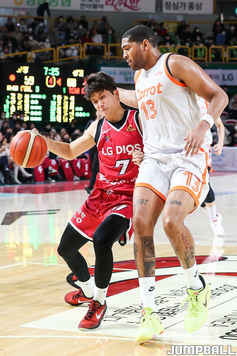 대학 시절 그를 가리던 거대한 그림자같던 선배 하윤기가 주전 빅맨으로 뛰는 팀이다. 차라리 하윤기가 베테랑이면 이후를 도모할 수도 있겠지만 둘의 나이 차이는 불과 1살에 불과하다. 거기에 둘 다 군면제다. 하윤기가 상무 등에 간 틈을 타 기회를 노릴 수도 없는 입장이다. 그렇다고 막연하게 주전 경쟁을 하기에는 팀을 넘어 국가대표팀에서도 주축으로 발돋움한 하윤기는 너무도 거대한 벽이다.