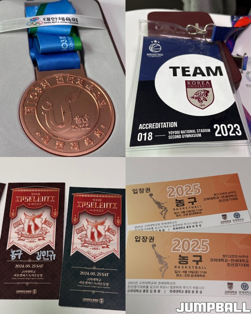 짜릿했던 순간을 뒤로 한 채 본격적으로 옷장과 서랍으로 시선을 옮겼다. 김민규는 지난 2월 졸업한 대졸자(고려대)이기에, 대학 시절과 관련된 추억 하나하나를 여전히 가지고 있었다. 전국체전 선수단 명찰 및 동메달을 시작으로 WUBS의 기억을 담은 명찰… 나아가 고려대 시절 유니폼까지. 심지어 축제 입장권과 정기전 입장권까지 보유하고 있었다. 가스공사 입단 후 고려대 기숙사에서 온갖 추억을 대구로 가져온 효과(?)였다.