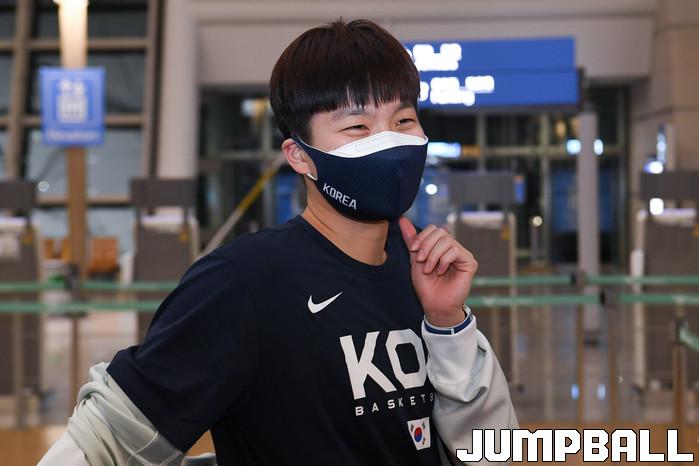 7일 정선민 감독과 최윤아 코치가 이끄는 한국 여자농구 대표팀이 2022 FIBA 여자농구 월드컵 최종예선이 열리는 세르비아 베오그라드로 출국했다. 진안이 동료들과 대화를 나누며 웃고 있다.