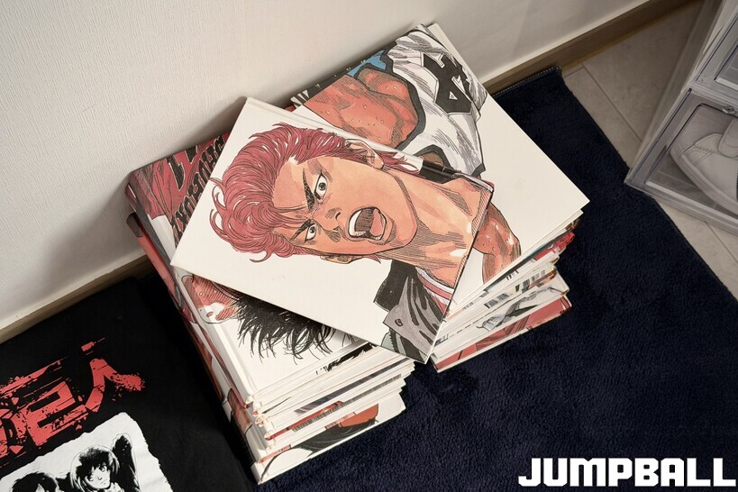 그중에서도 먼저 시선을 붙드는 건 만화 슬램덩크였다. 방 한쪽에 예쁘게 쌓아둔 만화책부터 심상치 않았다.