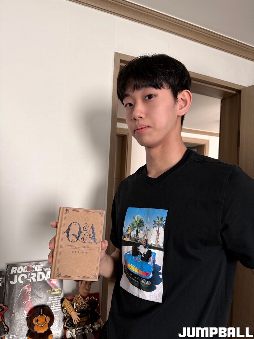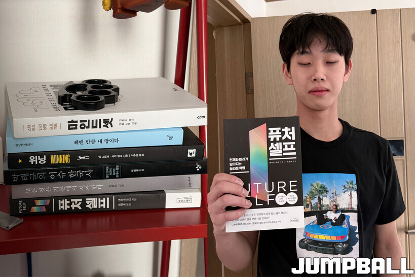 "이 책은 이현중(나가사키) 선수 아버지께서 주셨어요. 삼일고 부장 선생님이시거든요. 제가 드래프트 나간다고 했을 당시에 책을 선물해주셨어요. 책 읽는 습관을 들여야 되는데, 늘 100페이지 넘기기가 좀 힘들더라고요(웃음). 습관을 들여야 될 것 같아요. 너무 감사히 받아서 꼭 정독하겠습니다."