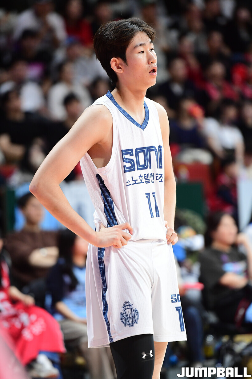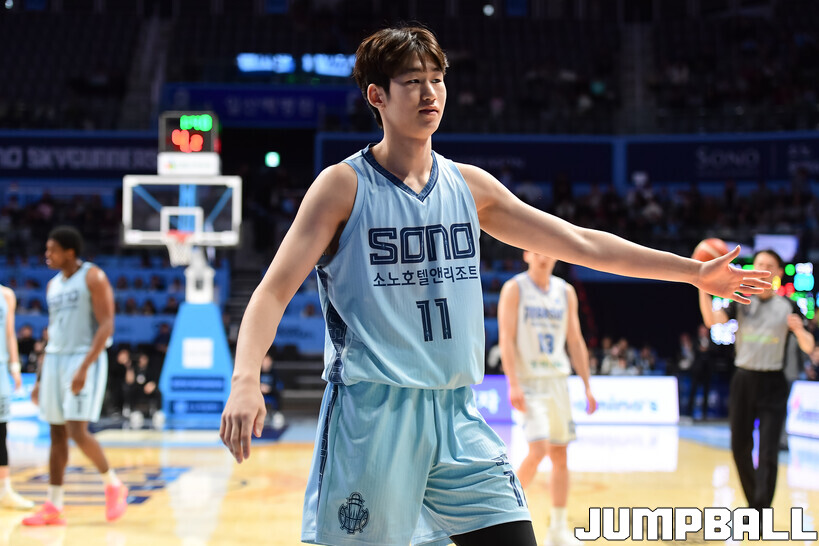 경기가 끝난 뒤, 빈 코트에서 슛을 마저 던지는 한 선수가 있었다. 소노 이근준(20, 194cm)이었다. 2024 KBL 신인선수 드래프트에서 고졸 신분으로 전체 2순위 지명을 받은 포워드 유망주다.