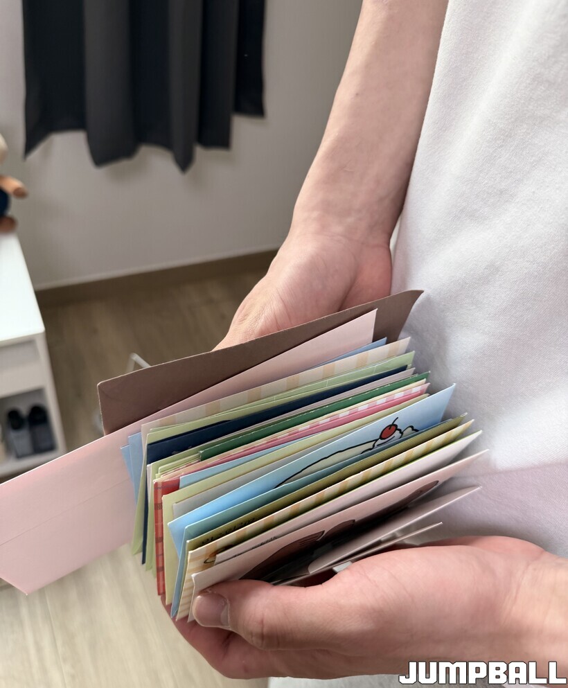 “여태껏 받은 편지 모음인데… 한번 보실래요? 저희 까꿍이(가스공사 팬 애칭)분들이 주신 소중한 편지를, 독서하듯 보고 있습니다.”