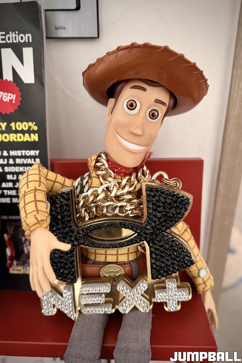 "옛날에 토이스토리를 좋아했거든요. 우디는 부모님이 사주셨어요. 농구를 시작도 안 했던 초등학교 때였어요. 이 캐릭터를 좋아해서 부모님이 사주셨거든요. 힙하게 가고 싶어서 체인을 하나 해줬습니다. 직접 리메이크한 셈이죠."