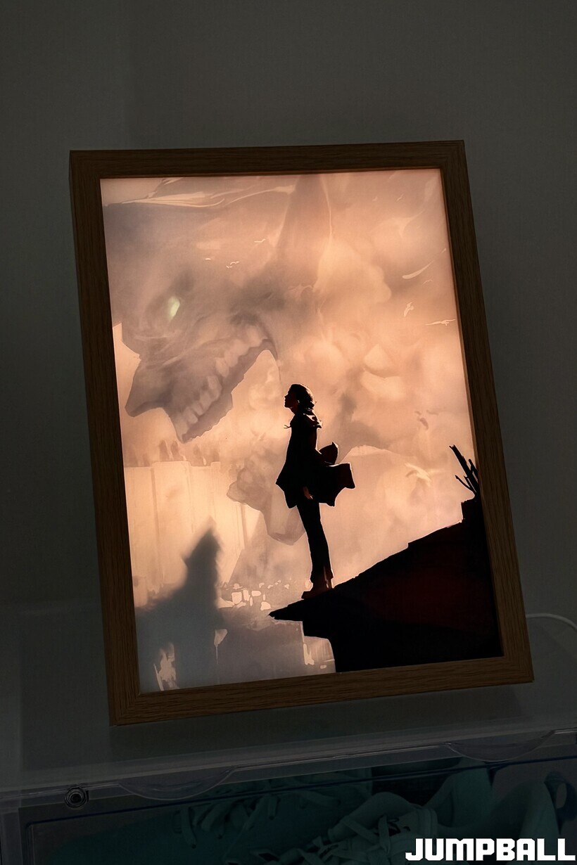 양우혁이 이번에 꺼내 보인 건 ‘진격의 거인’ 액자였다. 처음엔 그냥 방에 하나쯤 있는 장식품인가 싶었다. 그런데 양우혁이 별말 없이 스위치를 톡 누르자 분위기가 확 달라졌다. 액자에 불이 들어오면서 그림이 선명하게 살아났고, 방 한쪽이 순간적으로 전시 부스처럼 변했다. “우와!” 하는 반응이 절로 나올 만했다.