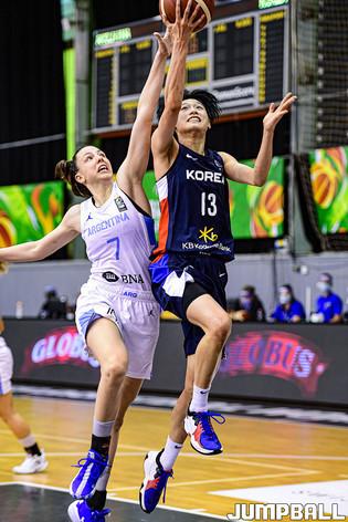 14일 헝가리 데브레첸 올라 가보르 스포츠홀에서 열린 '2021 FIBA U19 여자농구월드컵' 한국과 아르헨티나의 순위결정전 경기, 고은채가 돌파를 시도하고 있다.