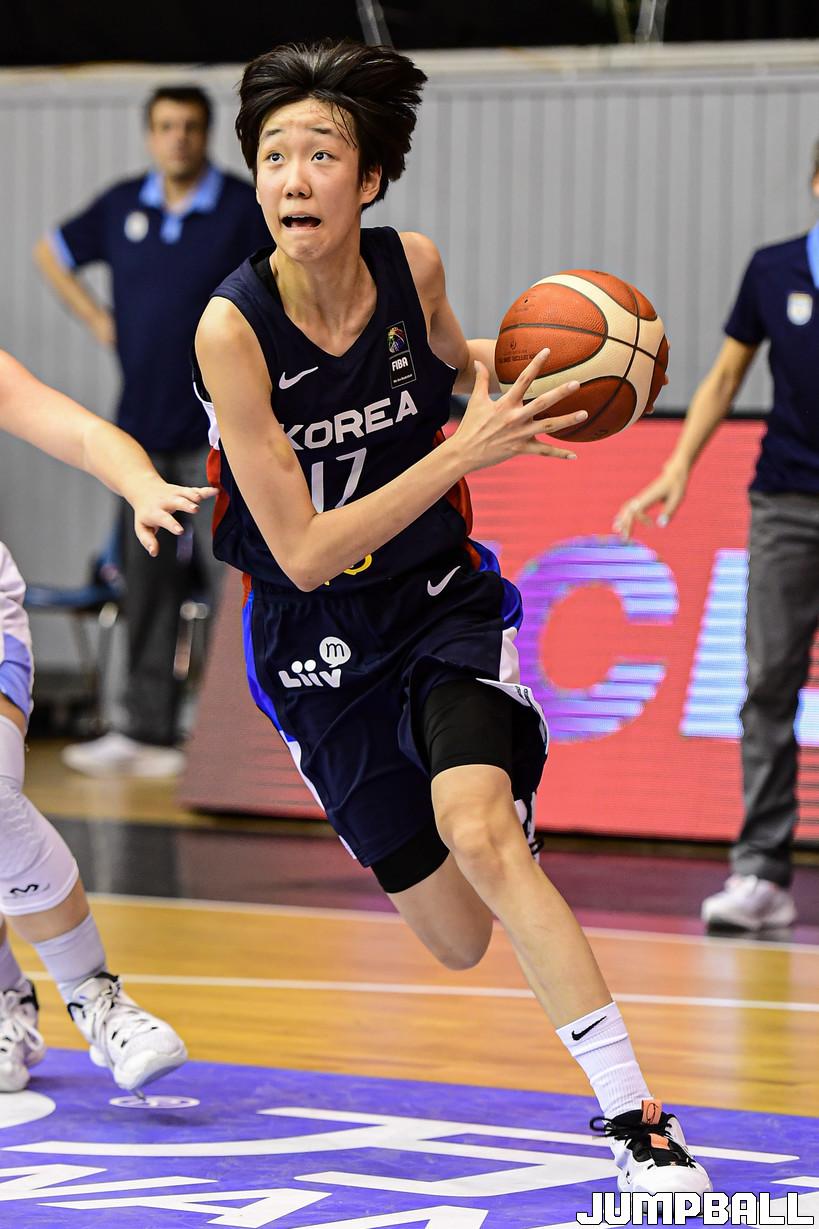 16일 헝가리 데브레첸 올라 가보 스포츠홀에서 열린 2022 FIBA U17 여자농구월드컵 한국과 아르헨티나의 13-16 순위 결정전, U17 여자농구대표팀 고현지가 돌파를 시도하고 있다.