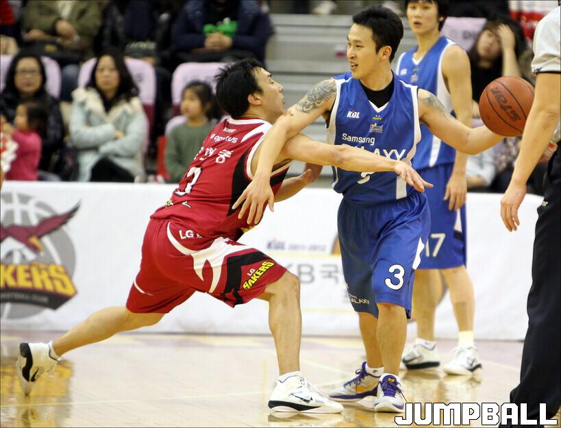 음…, 앞서도 언급했다시피 초반에는 승현이형을 따라하려고 많이 노력했어요. 하지만 그게 따라하려고 한다해서 되나요. 처음에는 되도 않는 것을 따라하려고 하다가 실책도 많이 했어요. 특히 패스. 승현이형의 감각적인 패스같은 것은 진짜 형만이 가능한 것이었거든요. 그렇게 안 좋은 패스를 남발하다 보니 불안한 선수라는 낙인이 찍히고 말았어요. 이후 따라하는 것 보다는 제 스타일의 농구를 하자고 마음을 고쳐먹었고 점점 플레이가 잘 풀리기 시작했습니다. 공수전환이 될 때 최대한 빨리 하프라인을 넘어가서 샷 클락을 확보하고 찬스나면 던지고, 2대2 플레이 등을 좀 더 자신있게 펼치고…, 그런 스타일이었던 것 같아요.