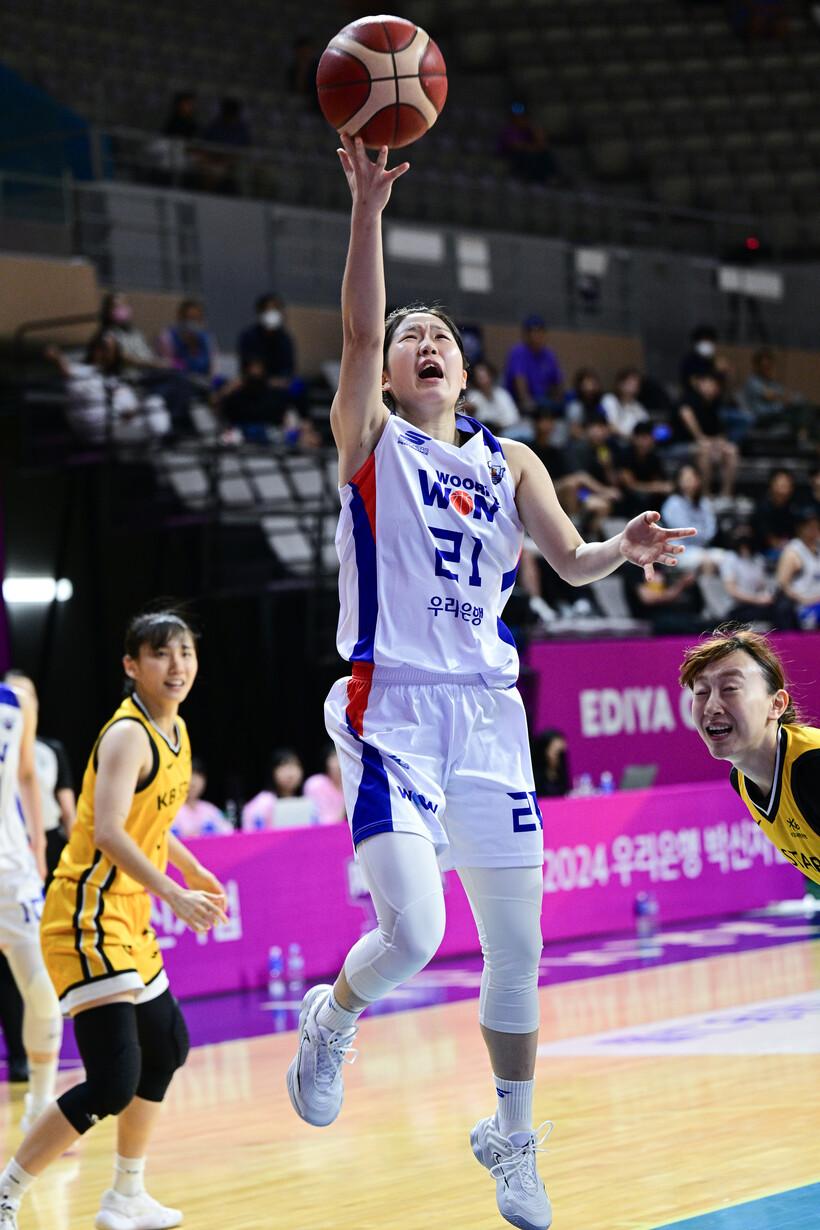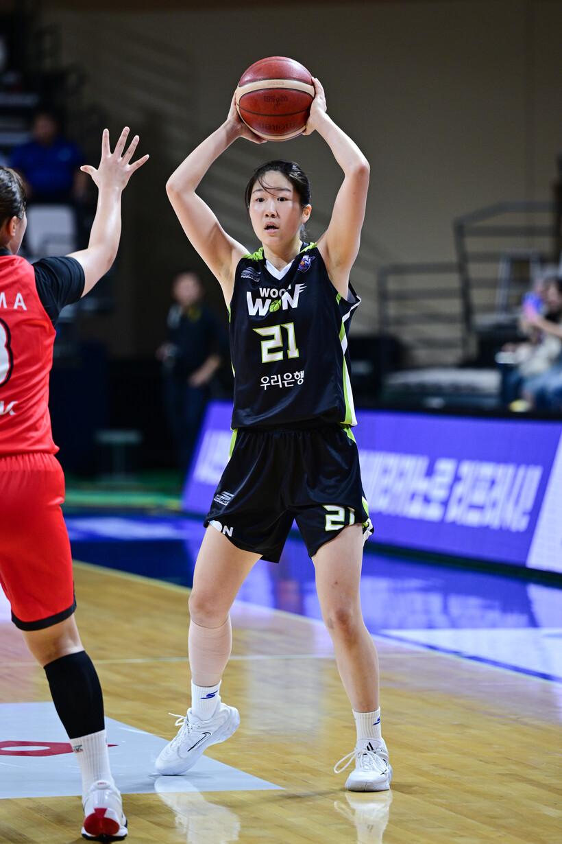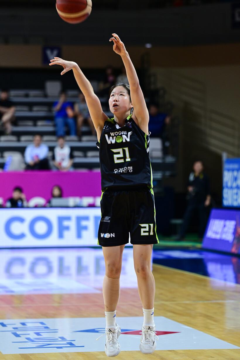 고등학교 때는 체력이 좋은 편이었는데 처음 여기(우리은행) 왔을 때 따라 뛰지도 못하고, 시간 안에 못 들어왔다. 이제는 언니들 따라 뛰면서 적응을 하고, 오프 시즌이 지나니까 체력이 올라오는 거 같다.