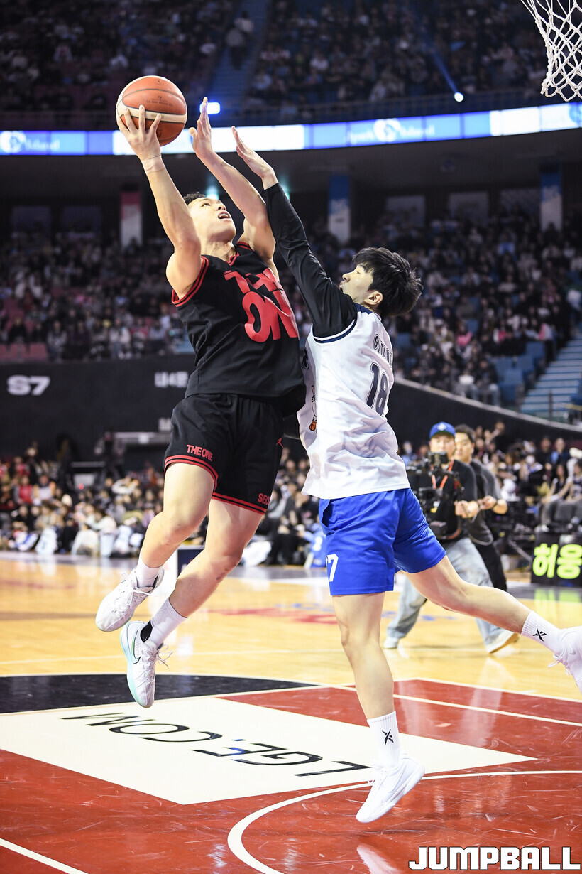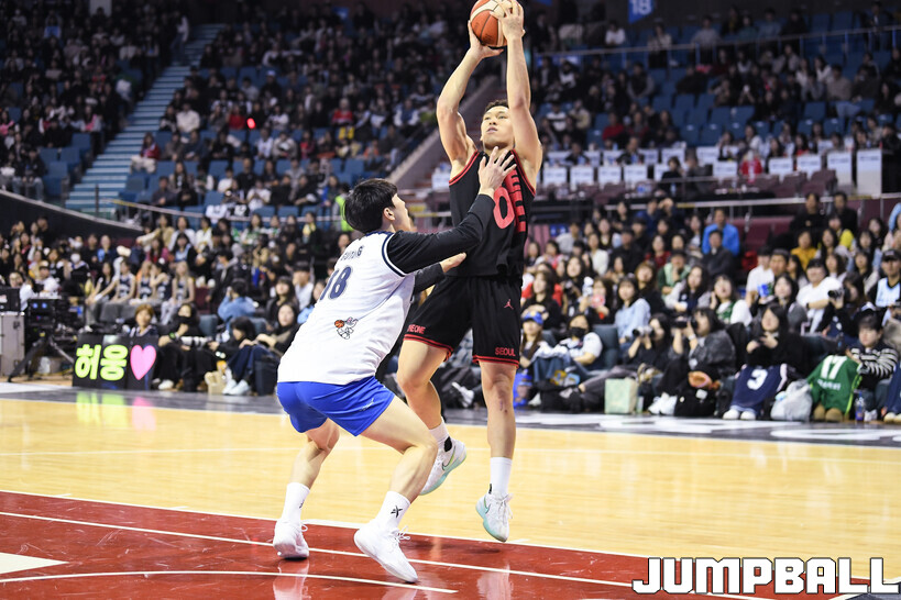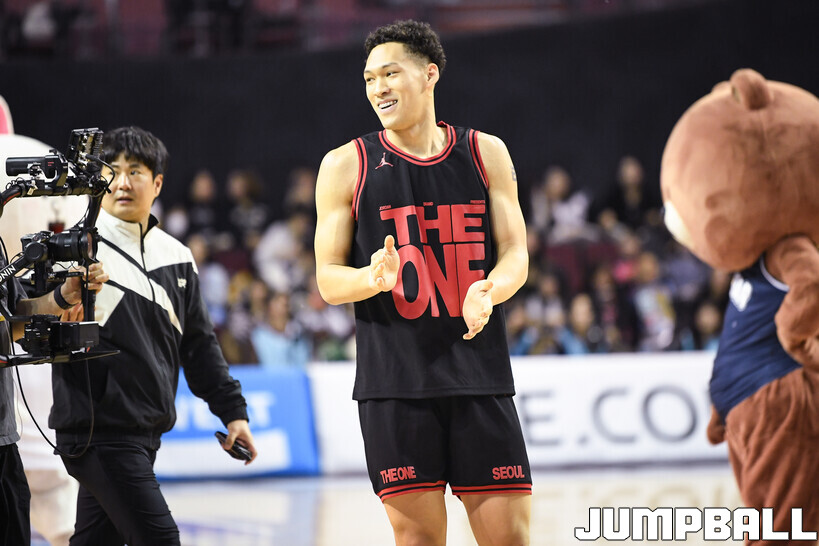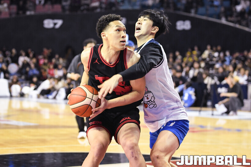 [점프볼=잠실/유용우 기자] 18일 잠실체육관에서 열린 2025-2026 LG전자 프로농구 올스타전 제이파크 아일랜드 리조트 1v1 콘테스트, 현대모비스 김건하를 상대로 승리하며 결승에 진출한 SK 에디 다니엘은 삼성 정성조를 상대로 11-2로 승리하며 초대 우승을 차지했다.