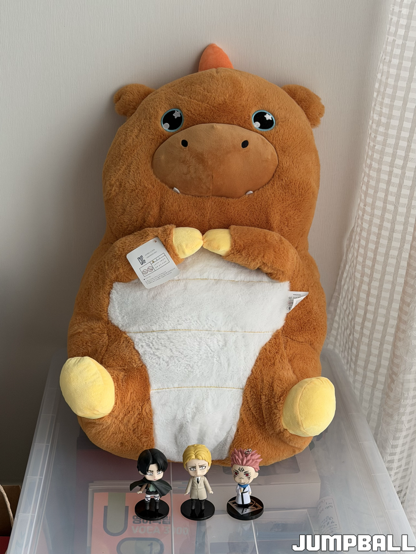 “이거는 엄마가 꾸며주셨어요. 폴라로이드는 사용법 알려준다고 찍어주셨거든요. 팬들이 선물해주신 꽃이랑 사진이에요. 이(아래 사진 참고) 피규어도 팬분이 뽑기로 주신 거예요. 진격의 거인 캐릭터랑 주술회전 캐릭터죠. 인형은 대구의 놀이공원인 이월드에 농구 게임이 있어요. 골을 넣어서 뽑은 거예요. 하나만 넣으면 되는 거긴 한데 쉽지 않습니다, 그거.”