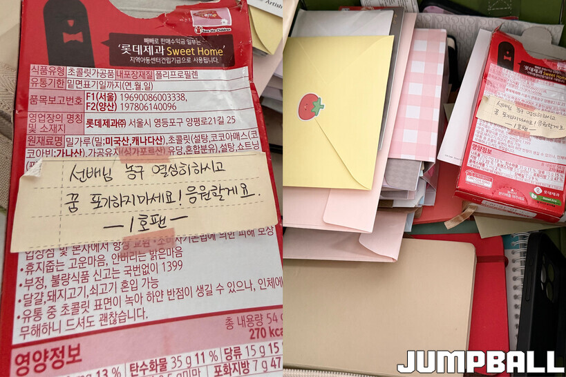 남는 건 사진이기도 하지만, 손편지는 또 다른 방식으로 오래 남는다. 누군가가 내게 진심을 담아 써준 문장은 못 버리게 된다. 빼빼로와 함께 받은 응원의 문구도 그랬다. 양우혁은 그 편지를 소중하게 추억 박스 안에 넣어두고 있었다.