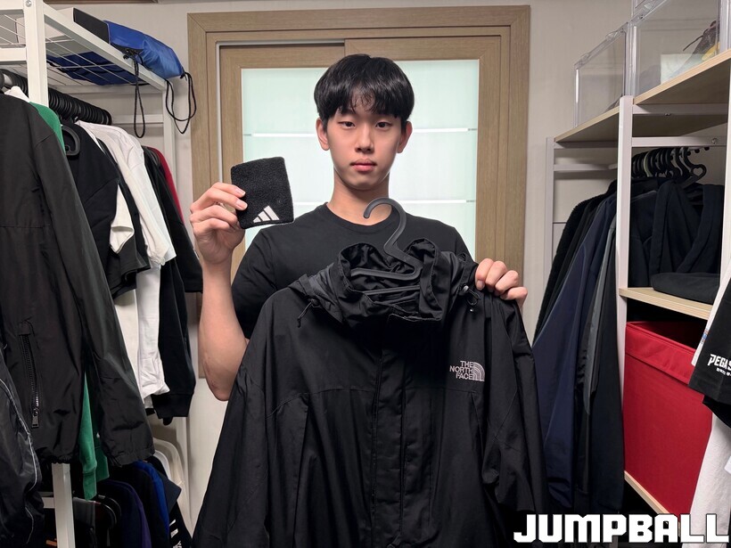 “이 옷은 아빠가 주신 건데 고등학교 때 주시고 제가 많이 입어서 골랐어요. 이 아대는 고등학교 때부터 쓰던 거예요. 근데 이거 방금 찾았어요! 어제도 차려고 했는데 없어져서 못했거든요. 덕분에 찾았습니다(웃음). 이것도 서태웅이 팔꿈치에 차거든요. 슬램덩크도 NBA를 모티프로 캐릭터가 만들어졌는데 강백호는 로드맨이고 서태웅은 마이클 조던으로요. 그래서 딱 여기 팔꿈치에 차고 있어요. 그래서 저도 찹니다.”
