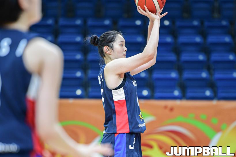 8일 헝가리 데브레첸 포닉스 아레나에서 열린 2022 FIBA U17 여자농구 월드컵 대회 2일차 훈련, 여자농구 대표팀 서진영이 점프슛을 시도하고 있다.