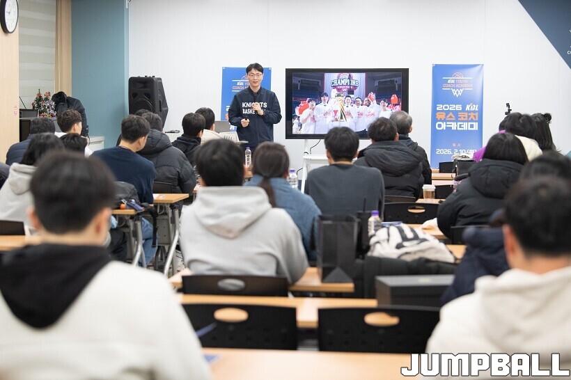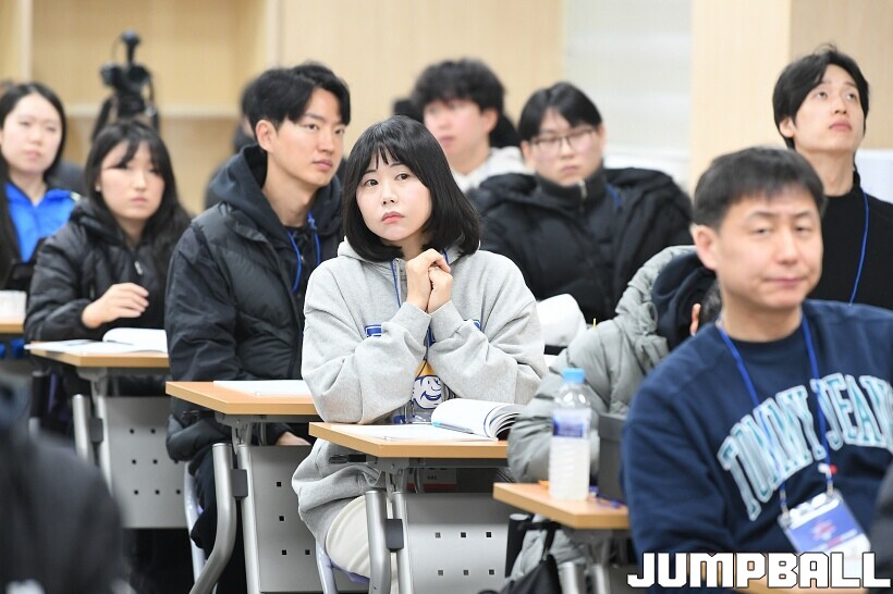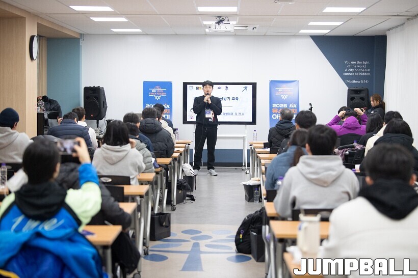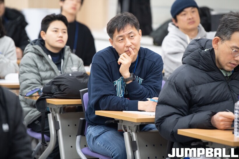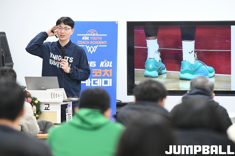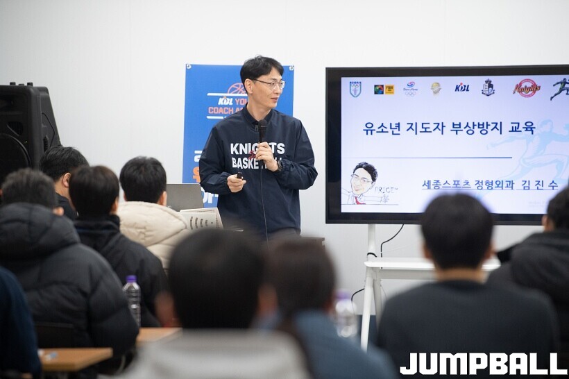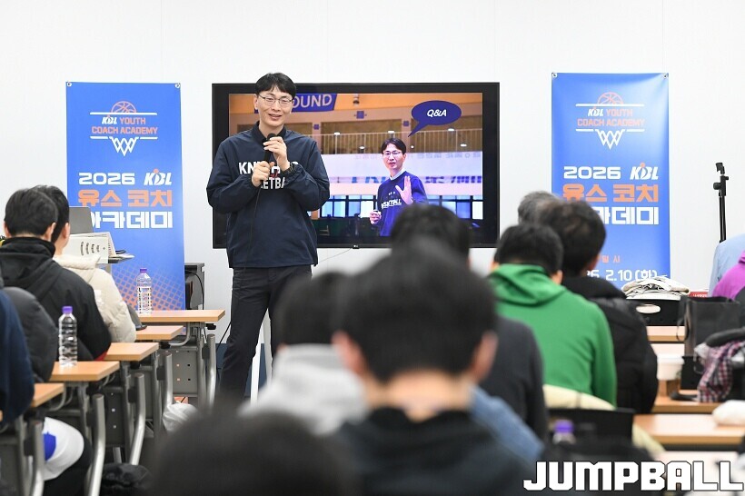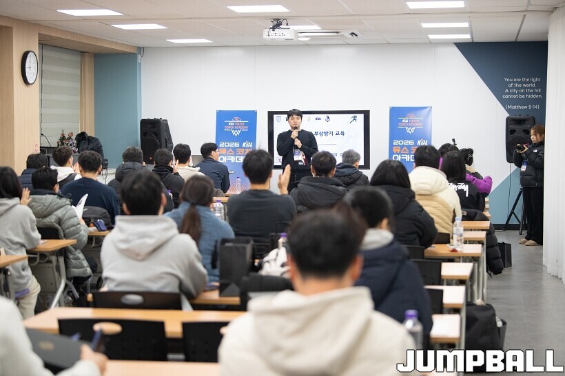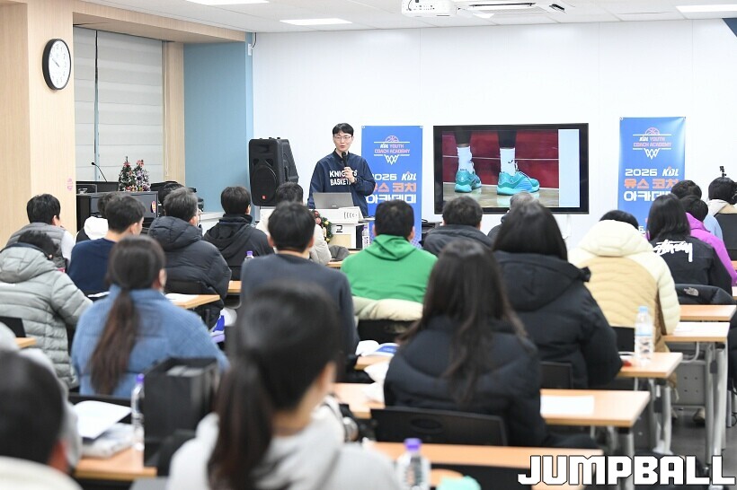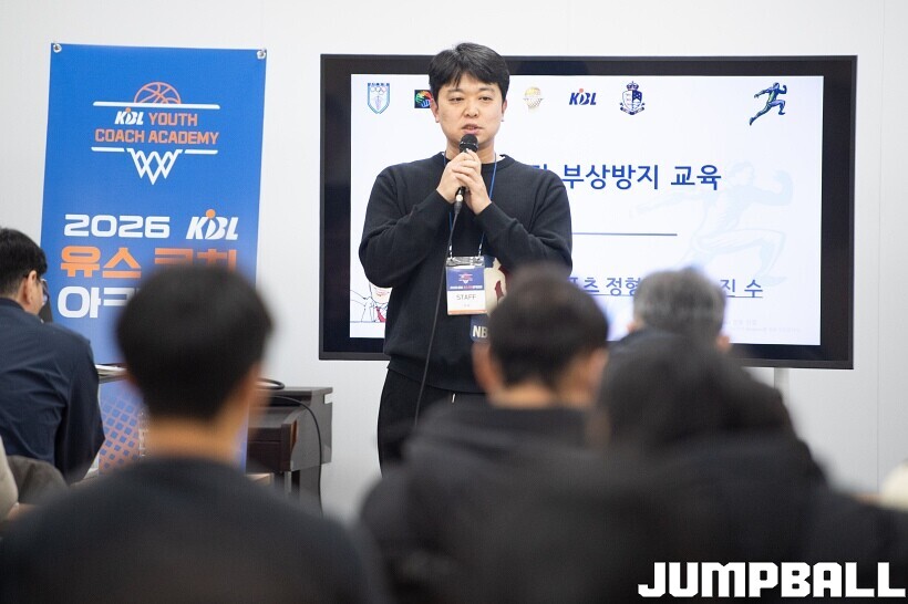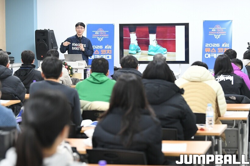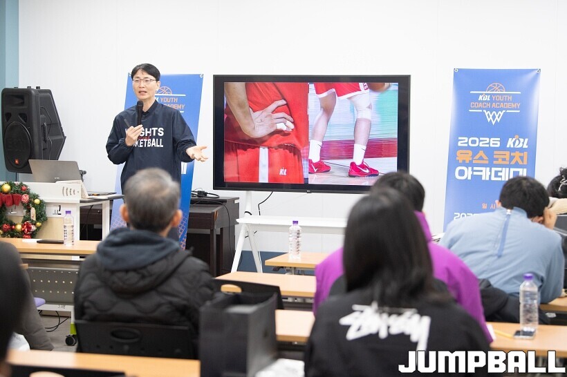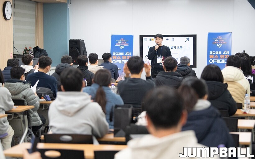 [점프볼=홍은/유용우 기자] 10일 명지고 체육관에서 2026 KBL 유스 코치아카데미 2기 1일차가 실시됐다. 오전 교육으로 세종스포츠정형외과 김진수 원장이 스포츠 손상 예방교육을 진행했다. KBL은 일반 학교 및 유소년 농구 현장에서 활동 중인 교사와 지도자들에게 전문적인 교육을 제공, 코칭 역량과 지도력을 향상시키는 것을 목적으로 KBL 유스 코치아카데미를 신설했다. 2기 아카데미에 선발된 40명의 교사들은 첫날 스포츠 손상 예방 교육, 부상 예방 테이핑법을 비롯해 신기성, 김도수, 오용준 강사의 기본기, 패턴 플레이 집중 훈련을 받으며 일선 학교에서의 교육에 응용을 위해 이론과 실기 수업을 이어갔다.