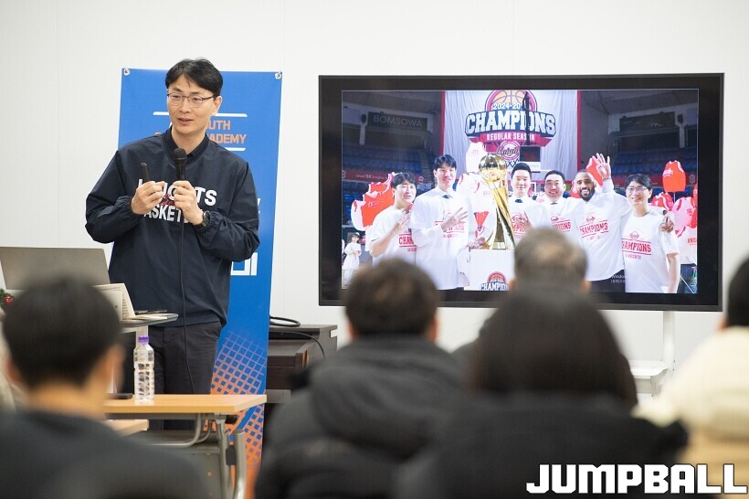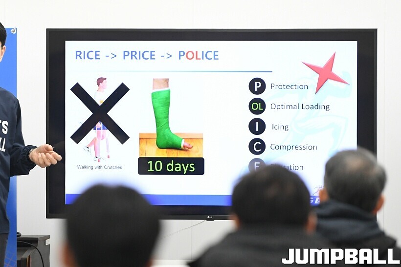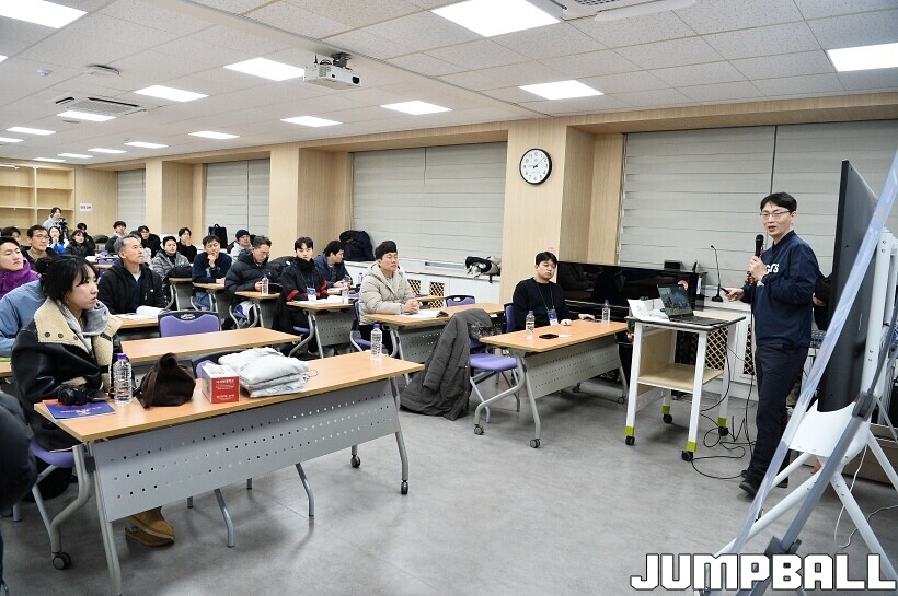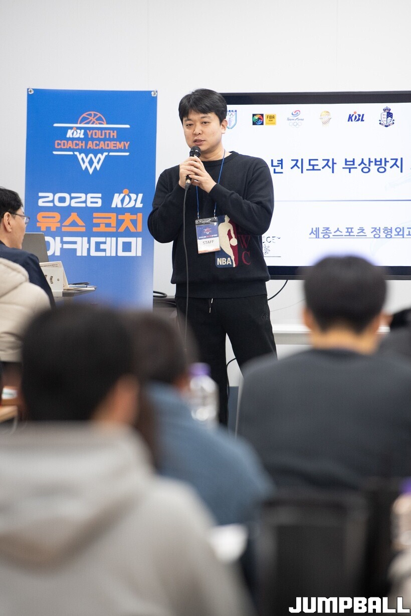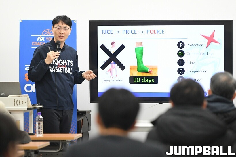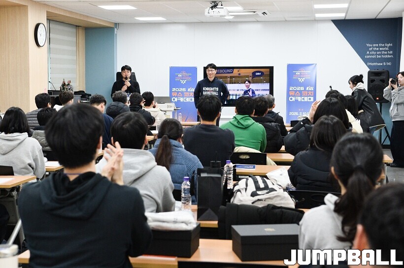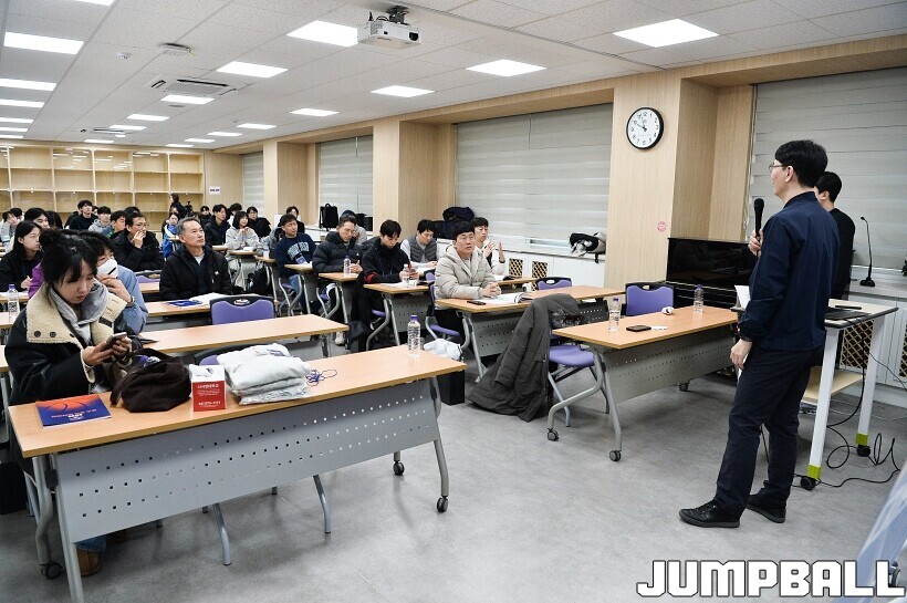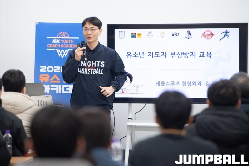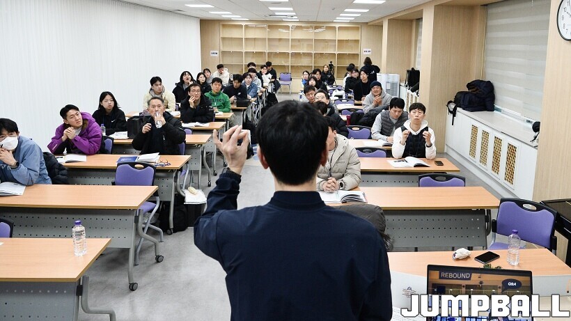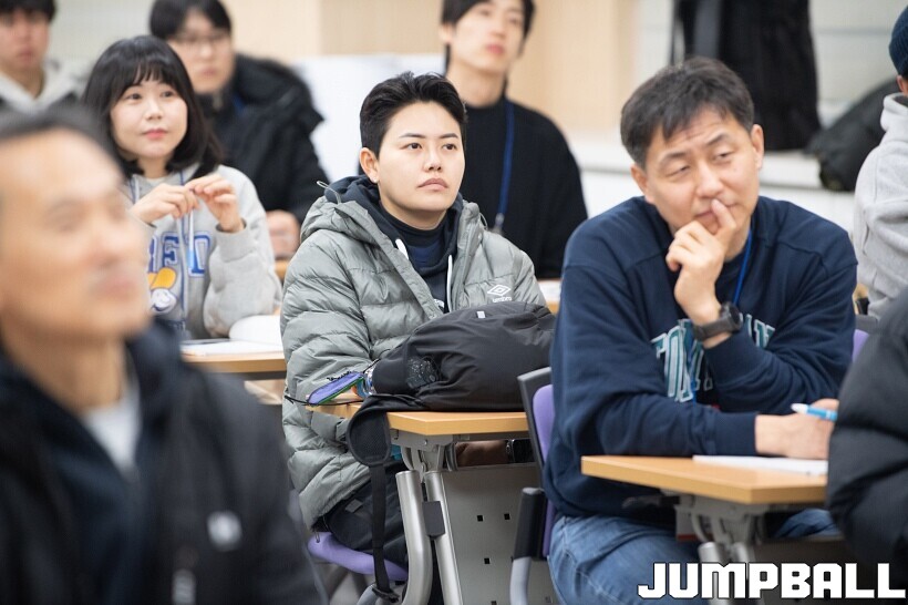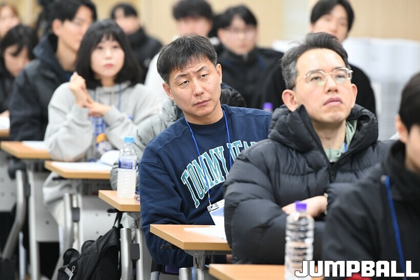 [점프볼=홍은/유용우 기자] 10일 명지고 체육관에서 2026 KBL 유스 코치아카데미 2기 1일차가 실시됐다. 오전 교육으로 세종스포츠정형외과 김진수 원장이 스포츠 손상 예방교육을 진행했다. KBL은 일반 학교 및 유소년 농구 현장에서 활동 중인 교사와 지도자들에게 전문적인 교육을 제공, 코칭 역량과 지도력을 향상시키는 것을 목적으로 KBL 유스 코치아카데미를 신설했다. 2기 아카데미에 선발된 40명의 교사들은 첫날 스포츠 손상 예방 교육, 부상 예방 테이핑법을 비롯해 신기성, 김도수, 오용준 강사의 기본기, 패턴 플레이 집중 훈련을 받으며 일선 학교에서의 교육에 응용을 위해 이론과 실기 수업을 이어갔다.