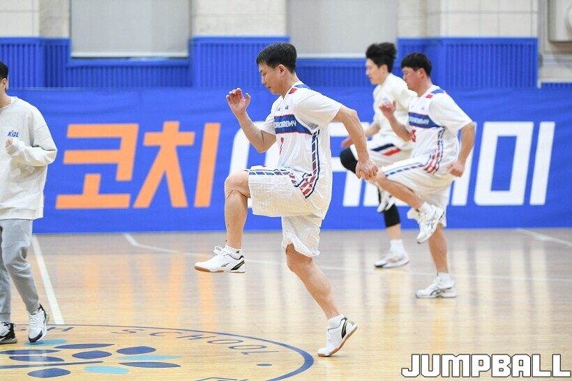 [점프볼=홍은/유용우 기자] 10일 명지고 체육관에서 2026 KBL 유스 코치아카데미 2기 1일차가 실시됐다. KBL은 일반 학교 및 유소년 농구 현장에서 활동 중인 교사와 지도자들에게 전문적인 교육을 제공, 코칭 역량과 지도력을 향상시키는 것을 목적으로 KBL 유스 코치아카데미를 신설했다. 2기 아카데미에 선발된 40명의 교사들은 첫날 스포츠 손상 예방 교육, 부상 예방 테이핑법을 비롯해 신기성, 김도수, 오용준 강사의 기본기, 패턴 플레이 집중 훈련을 받으며 일선 학교에서의 교육에 응용을 위해 이론과 실기 수업을 이어갔다.