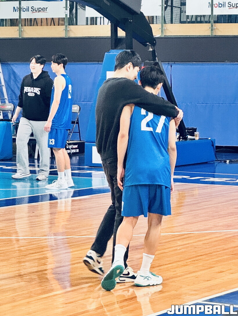 경기를 마친 뒤 강혁 가스공사 감독은 슈팅 훈련 중이던 일부 선수들과 이야기를 나눴다. 그 중에 한 명이 양우혁이다.