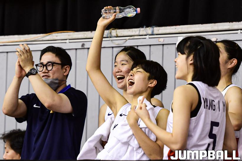 17일 헝가리 데브레첸 올라 가보 스포츠홀에서 열린 2022 FIBA U17 여자농구월드컵 한국과 벨기에의 순위결정전 13-14위전 경기, U17 한국대표팀 선수단이 환호하고 있다.