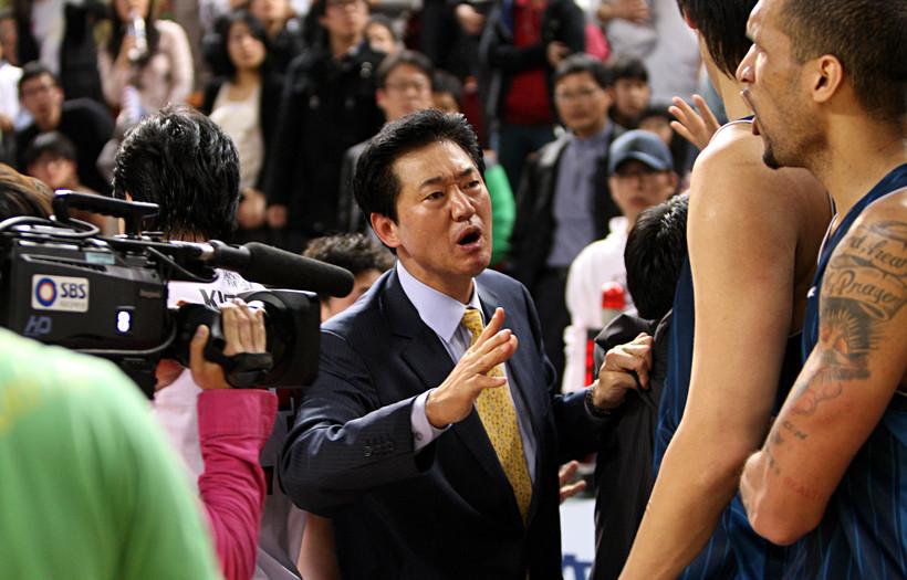 아니요. 전혀…, 그런 것에 휘둘릴 것 같았으면 농구판에서 오래 버틸수가 없었죠. 이미 감독이 나갈 정도의 팀이면 여러 가지면에서 전력이 다운된 상태라는 것이에요. 어쨌든 팀을 수습하면서 성적은 또 냈어야해서 의욕을 가지고 해보려고 했지만 뜻대로 되지않았어요. 다소 급조된 감도 있지만 감독을 시켰으면 원하는 그림은 어느 정도 펼칠 수 있게 해줘야잖아요. 그런데 그게 전혀 되지를 않았어요. 당시 라인업에 믿을 만한 가드가 너무 부족해서 노장이지만 강동희를 1년만 더 써보자고 했습니다. 들어주지를 않더라고요. 거기에 한술 더 떠서 생뚱맞은 가드를 한명 데려오는거에요. 그 선수는 제가 데리고 있어봐서 알아요. 기량이 어떻다 저떻다를 떠나서 1번에서 팀을 지휘하는 역할과는 맞지않거든요. 어쨌든 크고 작은 것으로 계속 마찰이 생기고 제가 원하는 전력구성 자체가 되지않았습니다. 도저히 안되겠더라고요. 당시 단테 존스를 앞세운 SBS가 엄청난 돌풍을 일으키며 15연승을 하고 있었어요. 우리 팀을 상대로 16연승을 노리고 있었지만 막아냈어요. 그리고는 해당 시즌을 9위로 마친후 사표를 던져버렸습니다.