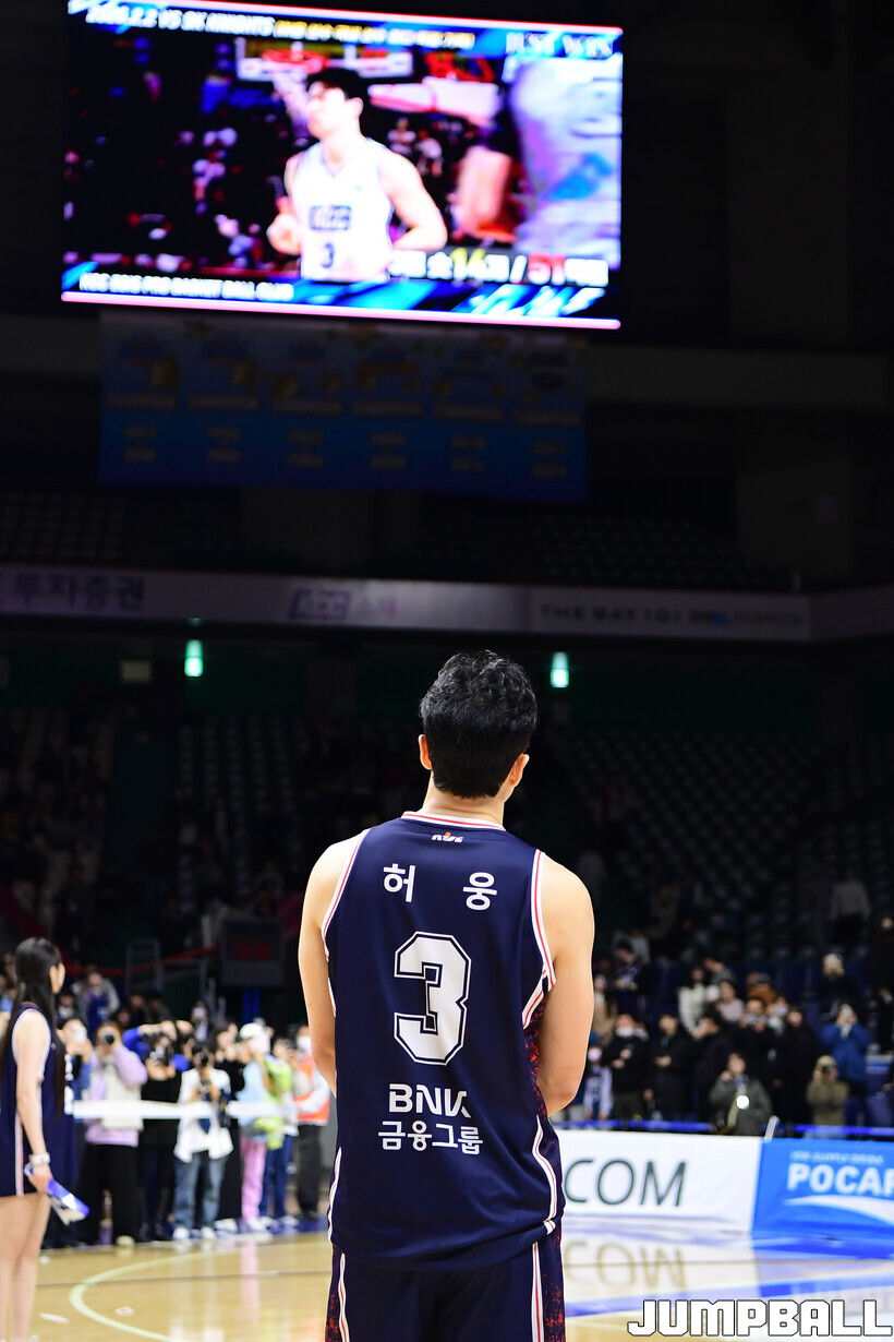 51점의 주인공 허웅(KCC)이 14일 부산사직체육관에서 열린 대구 한국가스공사와 경기에서 KBL이 마련한 기념상 시상을 통해 다시 한번 조명받았다. 그가 51점을 작성한 이후 처음 치르는 홈경기이기도 했다.