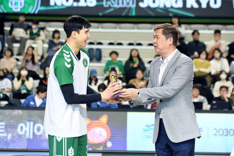 다들 아시다시피 제가 엄청 유명한 선수는 아니었잖아요. 당시 실업 및 대학리그에 쟁쟁한 스타급 선수들이 너무 많기도 했고요. 좋은 선후배들의 힘으로 한양대가 우승도 하고 그런 상황에서 저도 힘을 조금 보태서 대회 MVP를 수상한바 있습니다. 대학선발에도 뽑혔고요. 거기에 다른 포지션보다 유독 센터가 귀했던 덕분에 프로가 생기기 직전 기대보다 많은 계약금을 받고 오리온에 입단할 수 있었죠. 늦게 농구를 시작한 것치고는 이래저래 운이 많이 따랐다고 봅니다. 은퇴하자마자 프런트로 일할 수 있었던 것도 그 연장선이었고요.