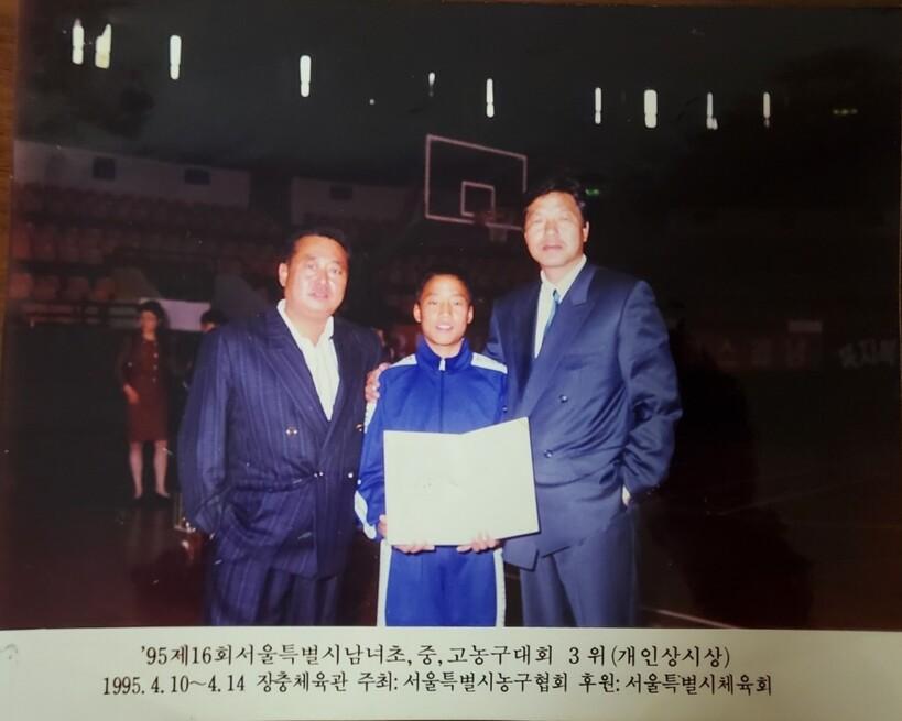 길거리농구대회에서의 인연으로 중학교 1학년 여름방학 때 경복고등학교 농구부에 가서 합숙을 하면서 훈련을 함께 했어요. 일종의 엘리트 체험이었죠. 그때 지금 현 서울 삼성 감독인 (은)희석형도 알게 됐죠. 다들 아시겠지만 경복고는 삼선중하고 연관되어있습니다. 그래서 경복고를 가기 위해 삼선중을 가려고 했는데 선수 숫자가 다 차있던 상황이었어요. 그래서 옆에 있던 홍대부중으로 방향을 틀었죠. 마침 아버지께서도 홍대부중 교장선생님을 알고 계셔서 거기서 엘리트 농구를 시작하게 됐습니다. 그때의 결정으로 인해 홍대부고까지 가게된 것이고요.