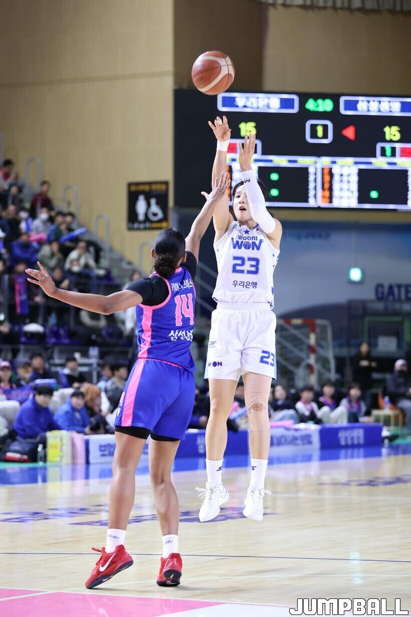 아산 우리은행은 지난달 31일 용인체육관에서 열린 용인 삼성생명과 맞대결에서 73-61로 이겼다.